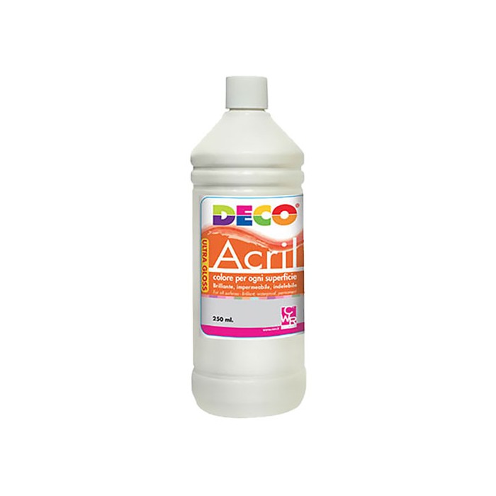 Prodotto a base acrilica pronto per l’uso con coloranti sicuri e innocui è stato studiato appositamente per l’uso dei bambini. Aderisce a tutte le superfici quali: vetro, plastica, legno, ecc. Facile da stendere una volta asciutto dona un effetto vernice brilante alla superficie trattata. Flaconi con impugnatura ergonomica e tappo dosatore.