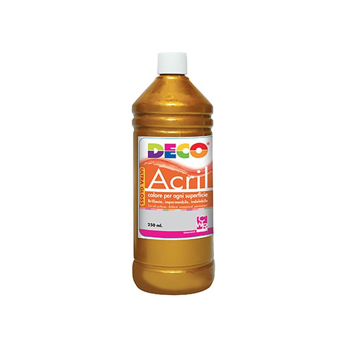 Prodotto a base acrilica pronto per l’uso con coloranti sicuri e innocui è stato studiato appositamente per l’uso dei bambini. Aderisce a tutte le superfici quali: vetro, plastica, legno, ecc. Facile da stendere una volta asciutto dona un effetto vernice brilante alla superficie trattata. Flaconi con impugnatura ergonomica e tappo dosatore.