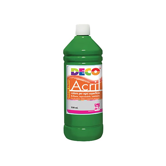 Prodotto a base acrilica pronto per l’uso con coloranti sicuri e innocui è stato studiato appositamente per l’uso dei bambini. Aderisce a tutte le superfici quali: vetro, plastica, legno, ecc. Facile da stendere una volta asciutto dona un effetto vernice brilante alla superficie trattata. Flaconi con impugnatura ergonomica e tappo dosatore.