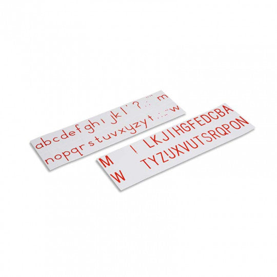 L'alfabetario stampato è utilizzato per scrivere parole, frasi e storie. Il materiale comprende 24 pezzi per ogni lettera. Le lettere sono stampate su cartellini di plastica: su un lato in maiuscolo e sull'altro lato in minuscolo. (Scatola venduta separatamente).