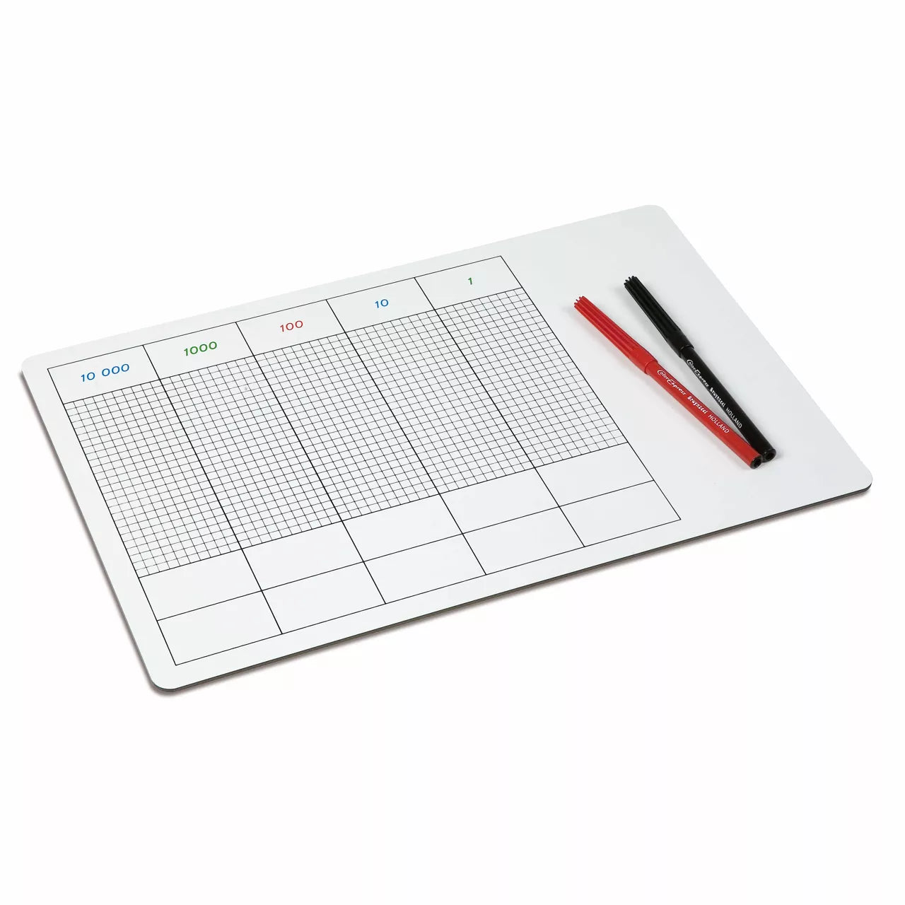 Il Gioco dei Puntini consente di fare pratica con l'addizione nel sistema decimale. Attraverso l'utilizzo di questo materiale, il bambino sperimenta il meccanismo del 'riporto'. Il materiale consiste di una speciale tavola di plastica quadrettata, cancellabile e provvista di colonne per le unità, le decine, le centinaia, le migliaia e le decine di migliaia. Sono inclusi 2 pennarelli cancellabili all'acqua di due diversi colori.