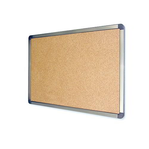 Bacheche in sughero con struttura in alluminio con angoli arrotondati. Appendibile sia verticalmente che orizzontalmente. Facile da montare. Puntine incluse. Dimensione: cm.90x120.