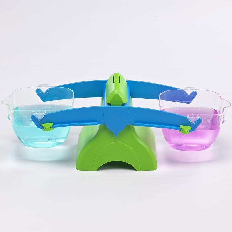 Bilancia in plastica resistente progettata per apprendere pesi e misure in modo attivo e manipolativo. I cubi trasparenti sono graduati con misurazioni e sono rimovibili, rendendo facile la misurazione e la manipolazione per le mani dei più piccoli. Per pesare oggetti e liquidi. Dispone di un compensatore scorrevole per effettuare misurazioni precise. La sua base antiscivolo lo rende ideale per essere posizionato sul tavolo da lavoro. Ideale per esperimenti in classe. Include: 2 secchi trasparenti da 1/2 l con beccuccio per versare facilmente i liquidi. Base antiscivolo. Pulsante di calibrazione. Realizzato in robusta plastica ad alto impatto. Guida alle attività.