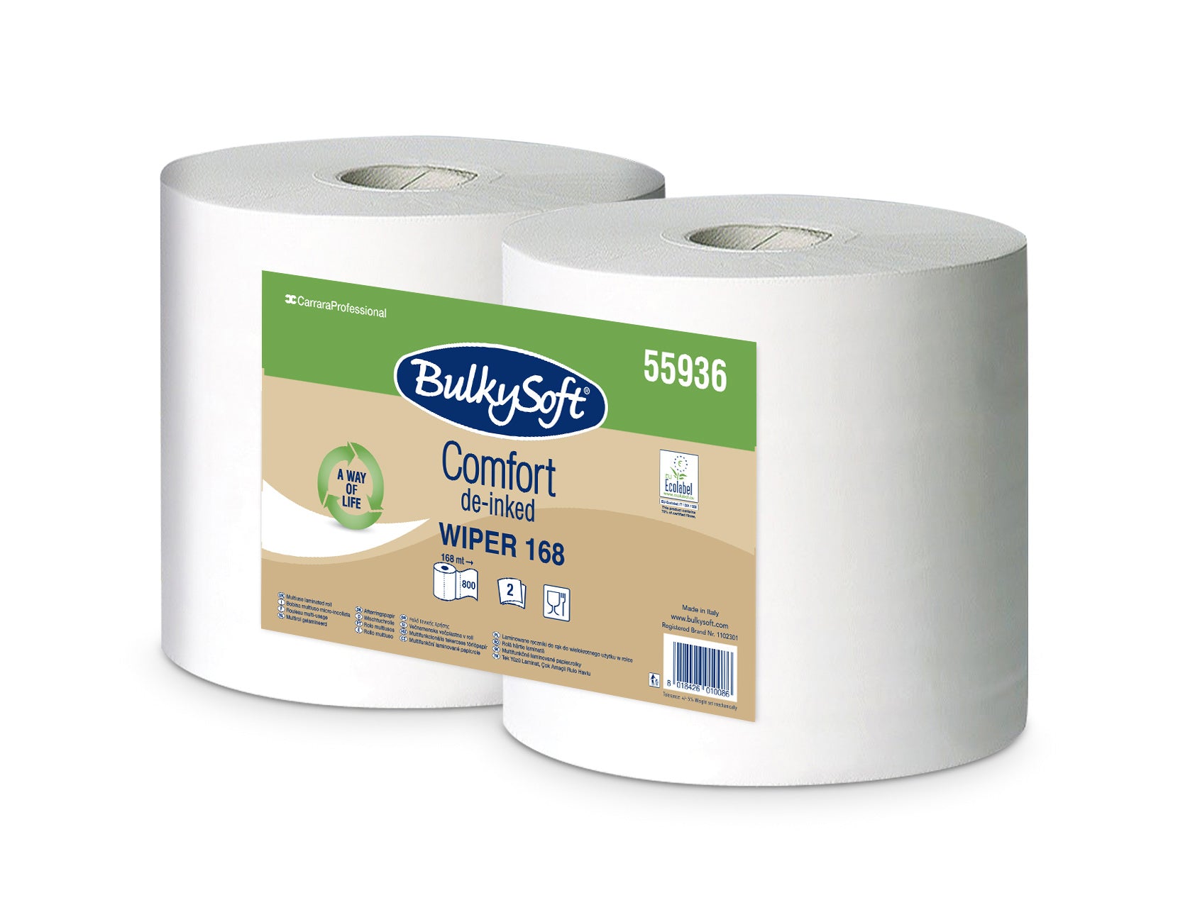 Bobina multiuso 800 strappi, 2 veli, goffratura micro, carta disinchiostrata. Lunghezza strappo 210 mm. Altezza rotolo 240 mm. Diametro rotolo 245 mm.