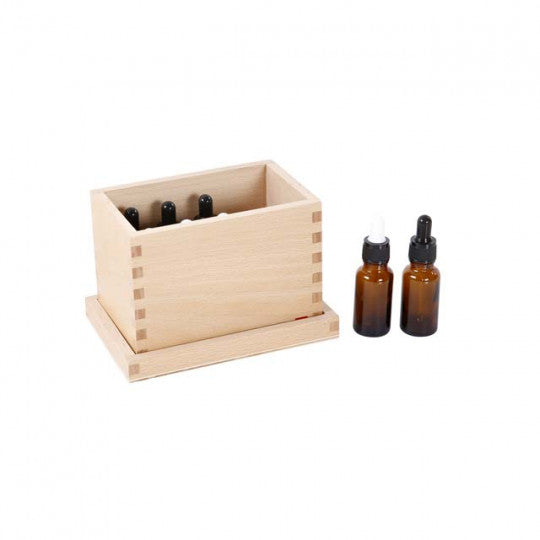 Le Bottigliette per Esercizi Gustativi hanno lo scopo di affinare il senso del gusto. L'insegnante inserisce nelle bottigliette liquidi dal gusto dolce, aspro, salato e amaro, che sono assaggiati e abbinati dai bambini. Il set comprende una scatola di legno dotata di due scompartimenti contenenti 8 bottigliette dotate di contagocce: 4 con estremità di colore nero e 4 con estremità di colore bianco.