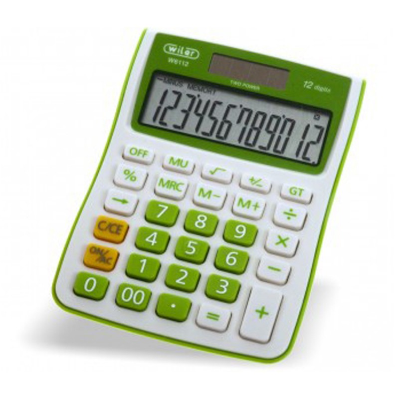 Calcolatrice da tavolo elettronica a 12 cifre, a doppia alimentazione: batteria ed energia solare. I tasti grandi e distanti, il display extra large e le funzioni semplici ne agevolano l'uso anche da parte di bambini discalculici. Adeguata per qualsiasi scrivania.