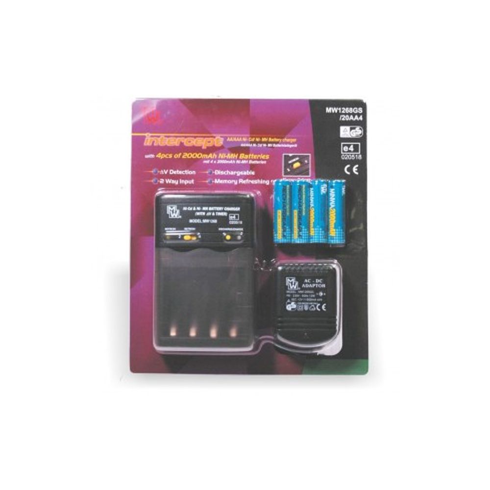 Caricabatterie con display LED blu e indicatore dello stato di ricarica per batterie ricaricabili. Carica 2 o 4 batterie Mignon (AA) o Micro (AAA) rechargeable Ni-MH simultaneamente. In un tempo di ricarica di circa 5 ore Ricarica completamente batterie AA 1600mAh; Caricabatterie utilizzabile in tutto il mondo (100-240V). Timer di sicurezza integrato per proteggere dal sovraccarico delle celle; non è possibile il sovraccarico. La confezione contiene: caricabatterie Varta Plug Charger nell’esclusivo design di Varta, 4x batterie AA (2100mAh) Ready To Use.