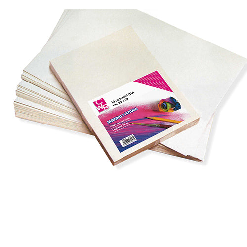 Confezione 10 fogli telati da 160 grammi nel formato da 23x33 cm.