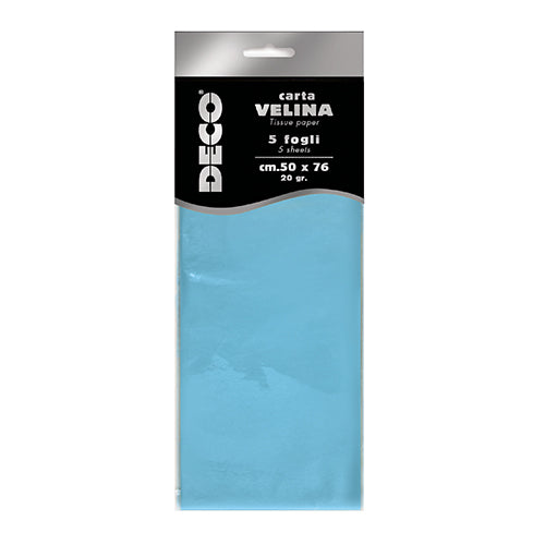 CARTA VELINA 20 GR. BUSTA 5 FG. CM.50X76 AZZURRO
