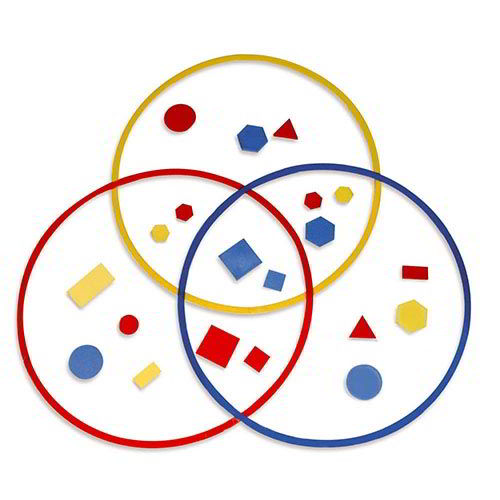 I cerchi sono snodabili e consentono di realizzare in modo pratico insieme, intersezioni ecc.. Consigliamo di utilizzare i cerchi con il supporto dei blocchi logici. Cerchi per insiemistica pieghevoli e flessibili ( 2 per ogni colore). Diametro: 50 cm. Numero Pezzi: 6.