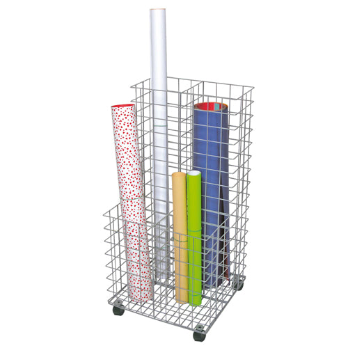 Cesta portaoggetti in metallo con griglie studiata per contenere documenti, disegni, bobine di carte di diversi formati. Inoltre si può utilizzare anche per tenere i palloni o attrezzi ginnici.
