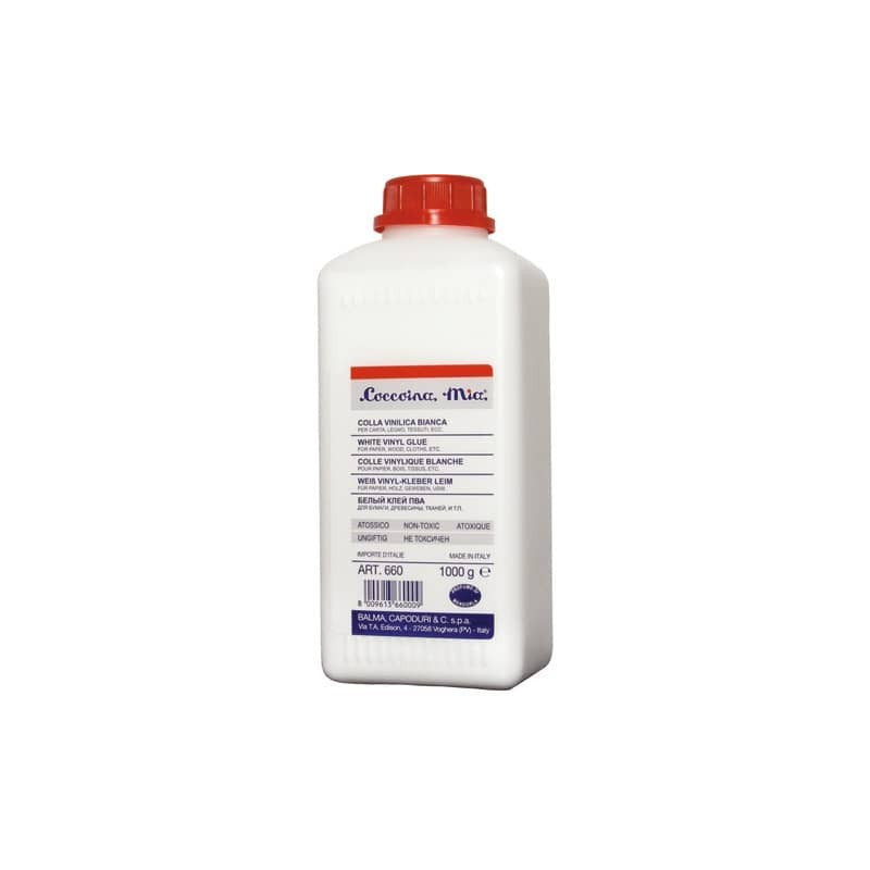 Colla vinilica bianca in flacone da 1000 grammi a base di acetato di polivinile (senza solventi), atossica. Mantiene la tradizionale profumazione di mandorla, tipica di tutte le colle “Coccoina”. È perfetta per incollare carta, cartoni, etichette, tessuti e anche legno.