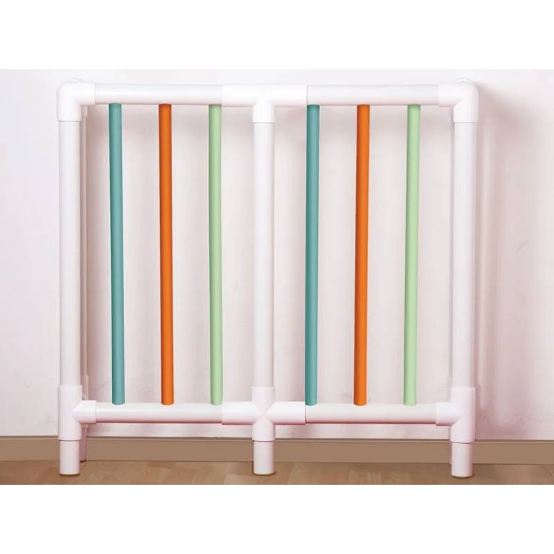 Protezione per caloriferi realizzata in PVC ignifugo cl.1 ed ATOSSICO, la struttura completamente arrotondata e priva di spigoli è ideale per proteggere i bambini dagli urti accidentali contro i radiatori. Il telaio perimetrale è composto da tubi in PVC diam. 42 mm nel quale si innestano i tubi di tamponamento verticale diam. 33 mm, la cui distanza di cm. 6,7 ne garantisce la conformità alla norma UNI 10809:1999 Par. 3.3 sull' inttraversibilità delle barriere. La struttura prevede al massimo ogni 60 cm., un tubolare verticale di rinforzo diam, 42 mm , completo di piedini che garantisce maggiore stabilità e solidità al manufatto. Offre una grande maneggevolezza e facilità di apertura e di pulizia da parte degli adulti. Disponibile in colori vivaci o tenui a scelta del cliente. VENDUTO AL METRO QUADRO.