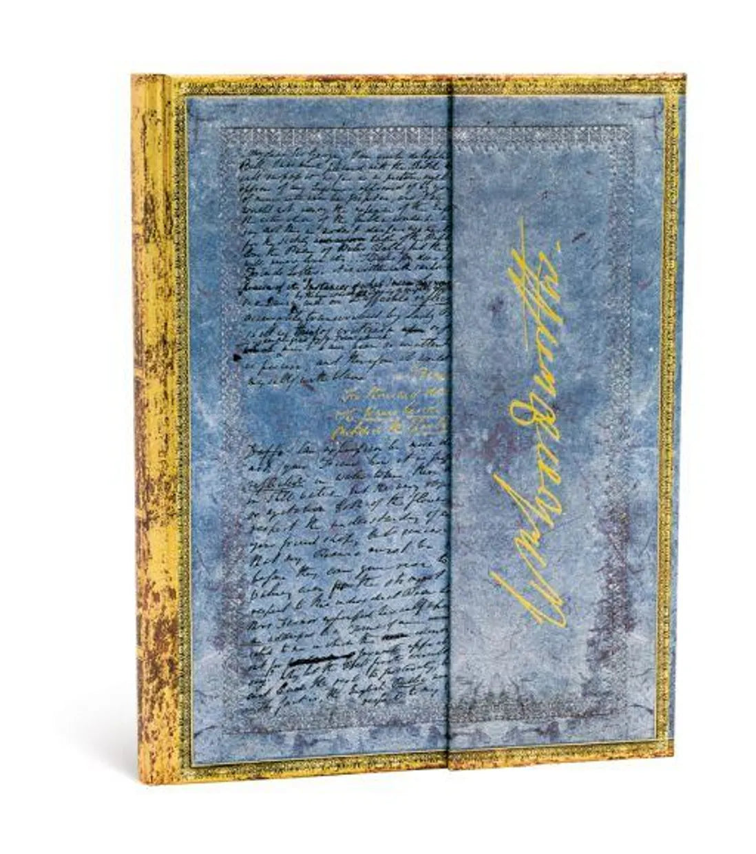 Questo diario Paperblanks celebra l'eredità di Wordsworth con un estratto di una lettera che scrisse ai suoi amici, in cui difendeva la sua opera e citava versi della sua ormai celebre poesia "Narcisi" ("Vagavo solitario come una nuvola").