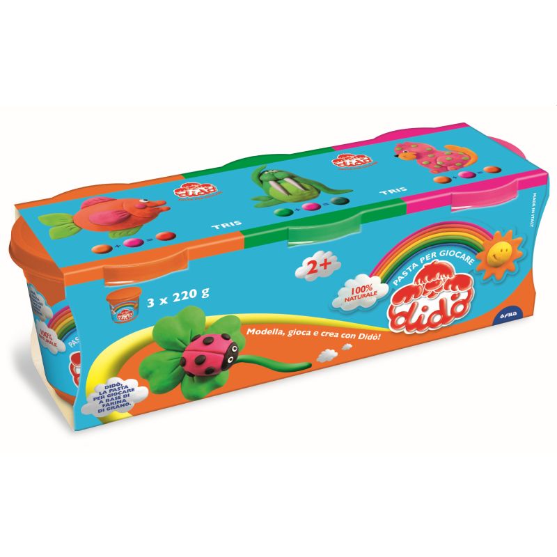 Didò è una pasta da modellare, per giocare, innocua, sicura e morbidissima. E' 100% naturale a base di farina di grano, acqua, sale e coloranti naturali.