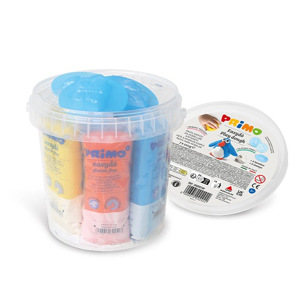 Panetto di pasta soffice da modellare in secchiello, 7 colori. Easydò gluten free è una pasta da modellare colorata e senza glutine, composta con materie prime al 92% di origine vegetale. Ben malleabile e miscibile, elastica, piacevole al tatto, non sporca le mani. Se lievemente secca, si può aggiungere una piccola quantità d'acqua e ritorna elastica e lavorabile. Ha colori lucenti e vivi che si mantengono tali anche dopo l’essicazione completa. Se si vuole riutilizzare, dopo l'uso evitare il contatto con l'aria in modo che easydò non secchi. Dermatologicamente testata.