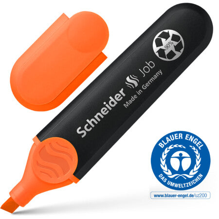 Evidenziatore con punta a scalpello con 2 spessori di tratto, 1+5 mm. Colore inchiostro arancione. L'evidenziatore Job è il primo evidenziatore realizzato con oltre il 90% di materiale riciclato ad aver ottenuto la famosa certificazione ecologica "Blue Angel". Il fusto, il serbatoio interno e la punta sono realizzati in plastica riciclata. L'inchiostro è a base bio. L'inchiostro universale per carta normale, uso fotocopia e fax ha una colorazione intensa ed è altamente resistente alla luce. Tutto ciò rende l'evidenziatore Job ideale per la scuola, lo studio o l'ufficio, con la sua punta a scalpello, è perfettamente adatto per lavori creativi nel bullet journal o per la calligrafia dell'hand lettering. Può essere refillabile tramite la stazione di ricarica Maxx 660. Grazie all'ampio serbatoio d'inchiostro, si possono evidenziare più di 15.000 parole.