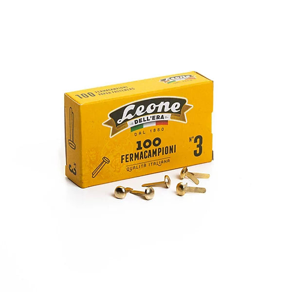 • Con una finitura in ottone brillante, i fermacampioni di Leone Dell'Era, sono perfetti per fissare in modo organizzato ed ordinato fogli, documenti e campioni in stoffa.