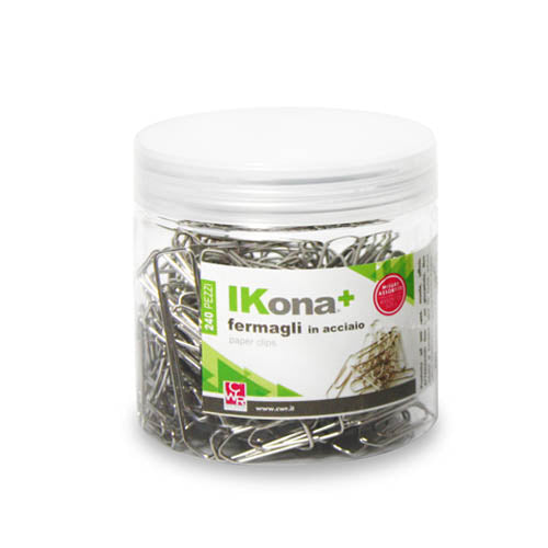 Barattolo da 240 fermagli in nickel di ottima qualità in misure assortite ( da mm. 28/32/49/58).