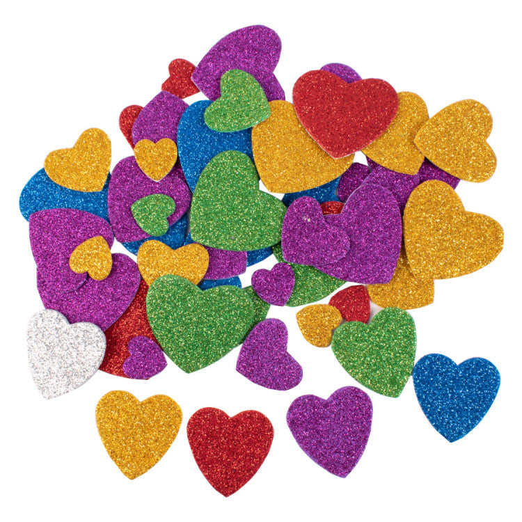 Bellissimi cuori autoadesivi e scintillanti. Decora qualsiasi cosa con graziosi cuori che possono essere attaccati alla maggior parte delle superfici. Un materiale perfetto per i lavori artigianali, con infinite possibilità di combinazione, che stimola la creatività di tutti.
