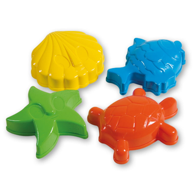 Le formine sono realizzate in plastica resistente e colorata, e sono dotate di una rete che permette di raccogliere la sabbia o l'acqua. Questo set di formine è ideale per stimolare la creatività e l'immaginazione dei bambini, che potranno creare tanti animali diversi utilizzando le diverse forme disponibili. Dimensioni: 12x12x3. Numero Pezzi:4 (Conchiglia, Stella Marina, Tartaruga e Pesce).