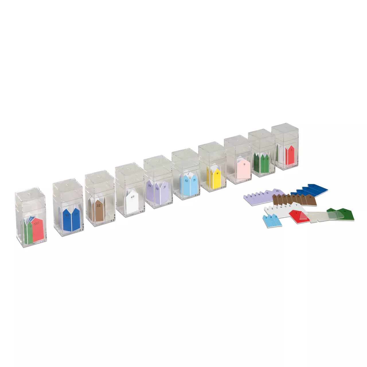 Serie completa delle frecce per le catene corte in 10 scatole di plastica trasparente.