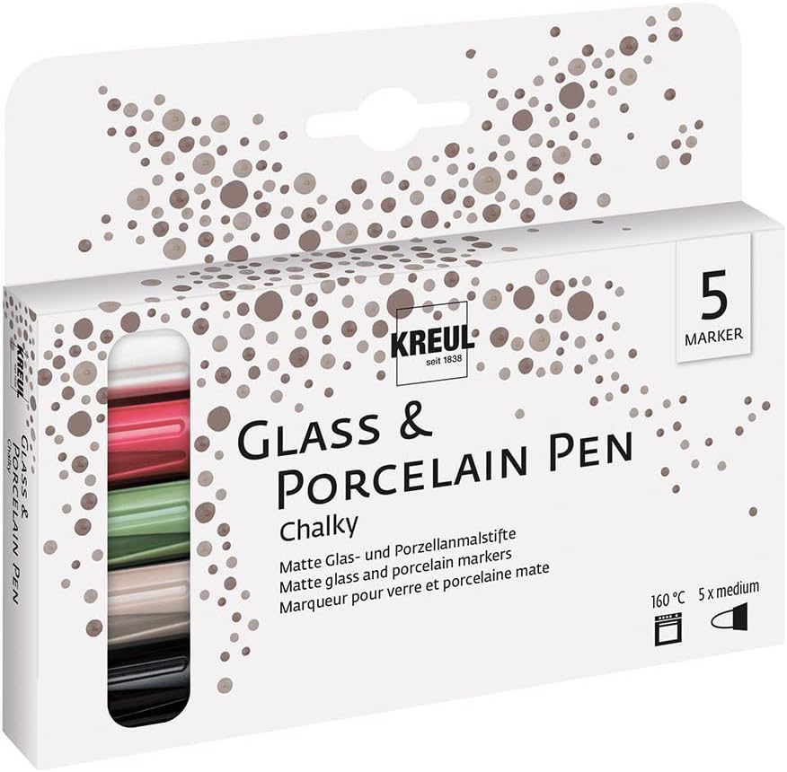 Confezione 5 pennarelli " GESSO" per Vetro e Porcellana punta Media ( Bianco, Rosso, Verde Rosmarino, Torrone, carbonio Nero ).