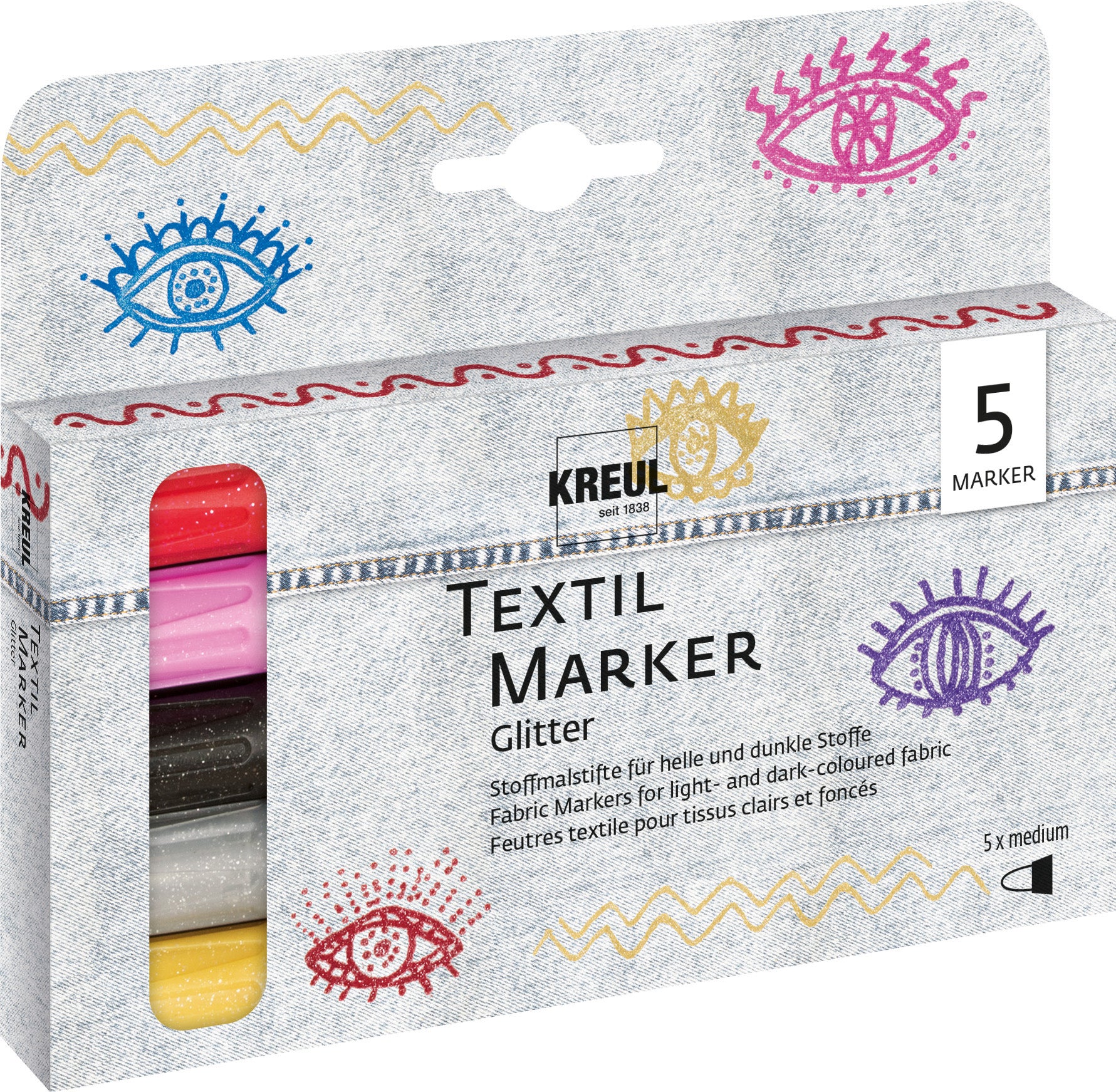 KREUL - MARKER PER TESSUTI - SET 5 GLITTER