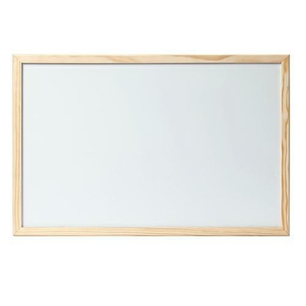 Lavagne bianche scrivibili a secco con cornice in legno naturale. Complete di marker. Dimensioni: 60x90 cm.