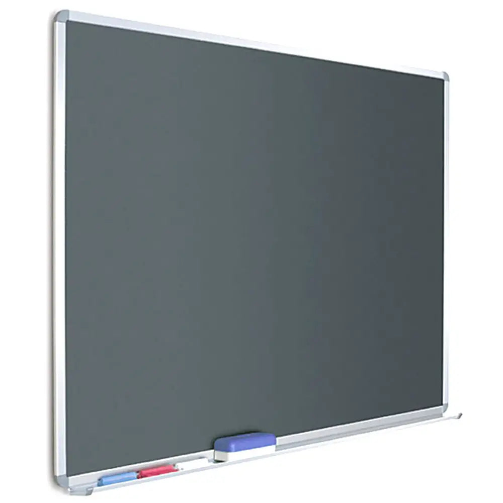 La lavagna magnetica offre una superficie in acciaio smaltato porcellanato grigio ardesia, perfetta per gessi. Resistente e duratura.