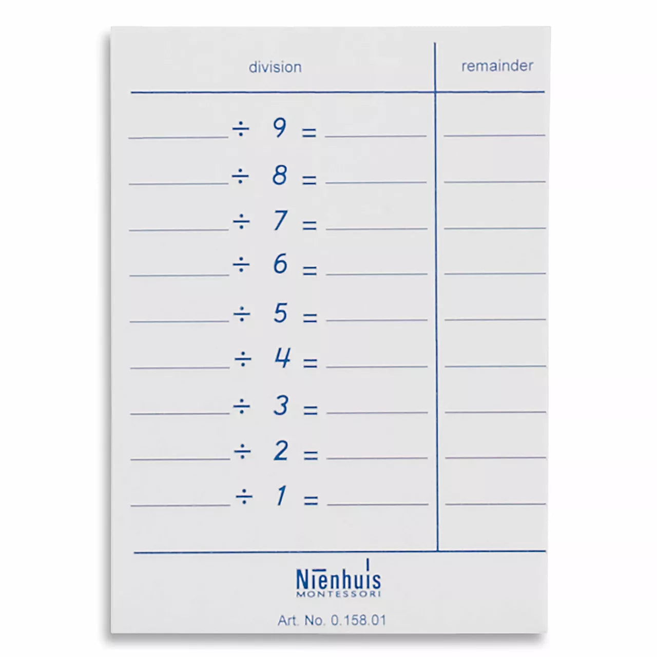 I libretti per la Divisione contengono le operazioni necessarie per gli esercizi con la Tavola della Divisione.