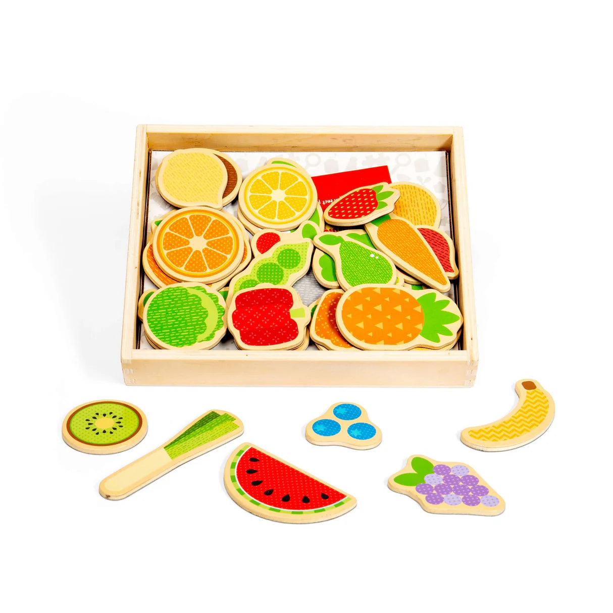 Regala la tua occhiata con questi magneti per frutta e verdura in legno perfetti pera. I magneti dai colori vivaci includono una varietà di frutta e verdura tra cui ciliegie, ananas, porro, broccoli, cipolla, funghi, uva e molto altro! Ogni pezzo di legno ha un retro magnetico pronto per essere posizionato sulla lavagna magnetica o sul frigorifero.