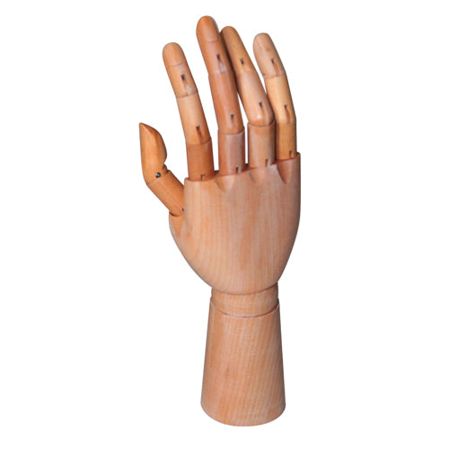 Manichino mano SINISTRA uomo snodabile in legno che permette di regolare la posa e il movimento delle luci.