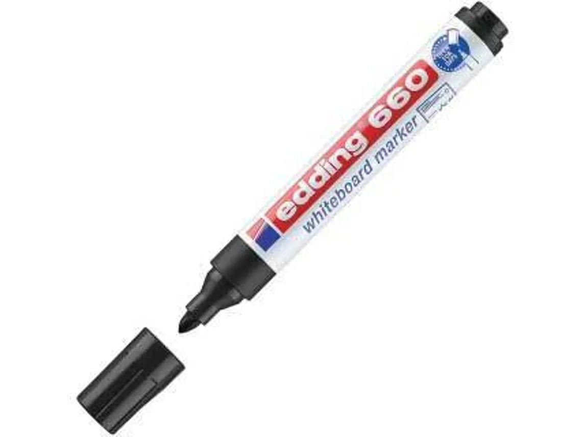 • Questo marcatore è ideato in modo specifico per scrivere sulle lavagne e su qualsiasi superficie non porosa: ad esempio smaltata, in vetro e in melamina. L'inchiostro ad asciugatura rapida e resistente alla luce si cancella facilmente a secco. Grazie al suo inchiostro speciale, il marcatore può essere lasciato senza cappuccio per diverse settimane senza che si secchi. Il marcatore per lavagna Edding 660 è dotato di una punta rotonda media che produce un tratto di 1,5 - 3 mm, perfetto quando servono precisione e meticolosità. Il marcatore vanta un design sottile in alluminio che lo rende estremamente confortevole e di facile utilizzo. Inoltre, è un prodotto ricaricabile che rispetta l'ambiente.