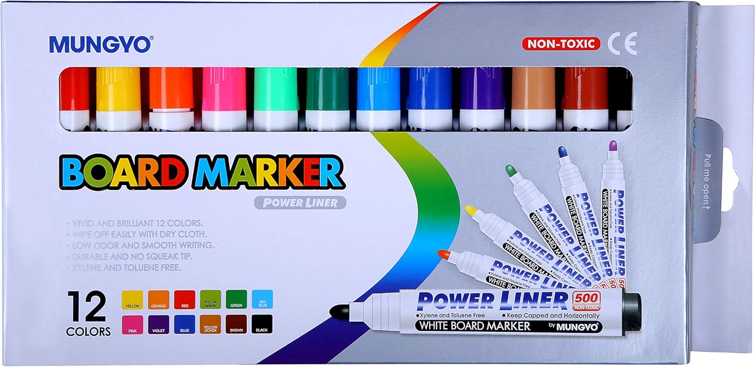 Confezione 12 pennarelli per lavagna bianca in 12 colori vivaci.
