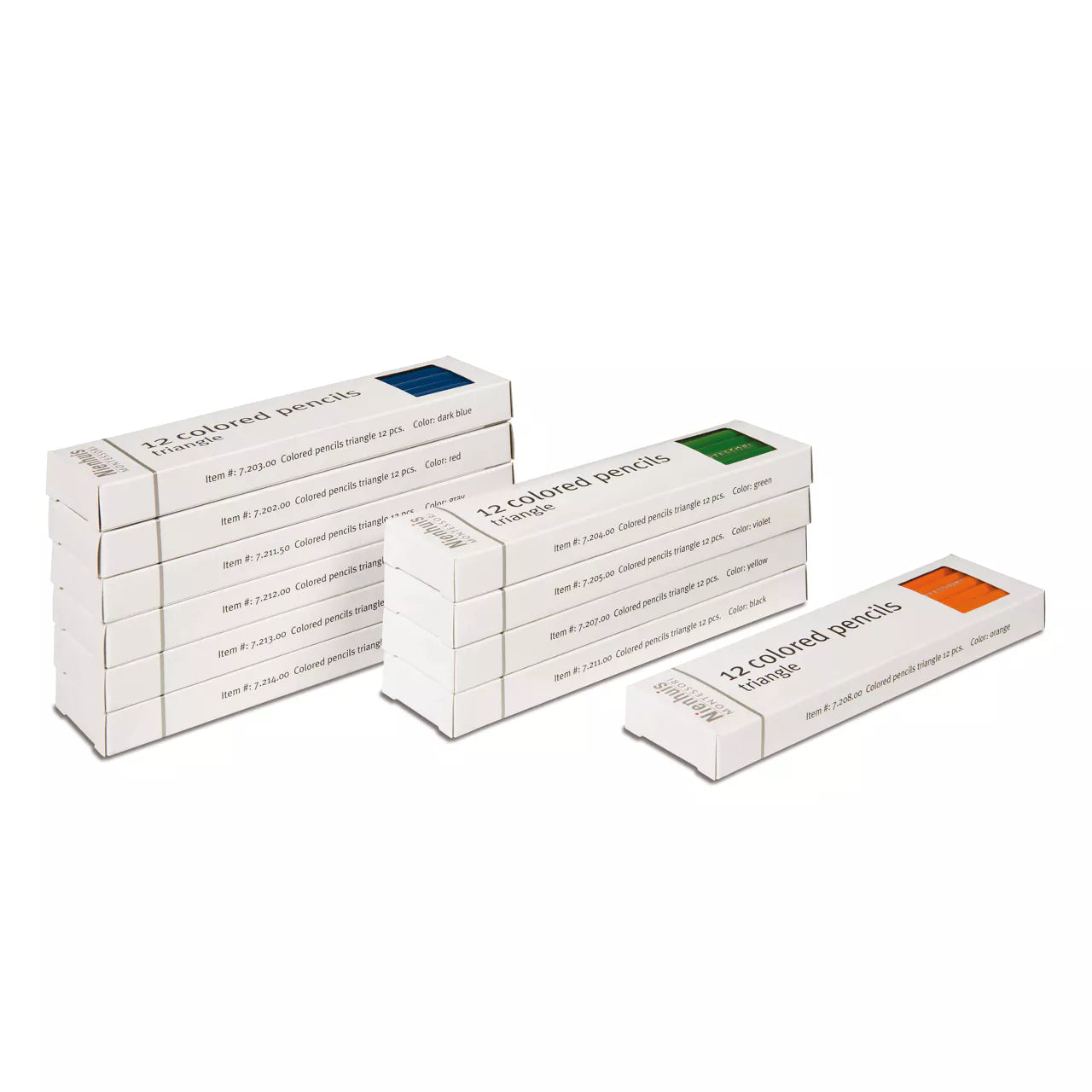 Serie di 11 dozzine di matite negli stessi 11 colori dei relativi portamatite , acquistabili separatamente nel nostro sito. Le matite hanno sezione triangolare per una presa ergonomica.