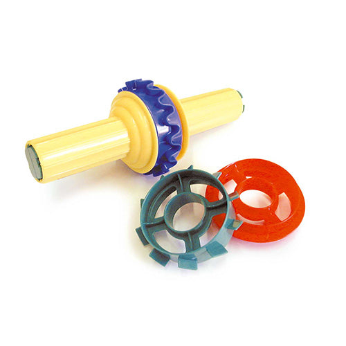 Confezione Mattarello in resistente plastica con 3 ruote sagomate intercambiabili da lunghezza cm.21. Perfetti per modellare plastilina, das, didò, creta e argilla con estrema facilità, grazie alle comode prese.