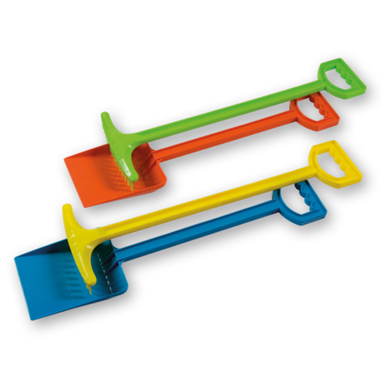 Con una lunghezza di 42 cm, è ideale per i bambini che vogliono giocare a scavare e costruire castelli di sabbia. La sua forma compatta e maneggevole la rende facile da maneggiare anche per i più piccoli. Composto da due pezzi un Rastrello e una paletta gigante. Disponibile in 4 colorazioni ( Blu,Rosso,Verde e Giallo) a seconda della disponibilità.