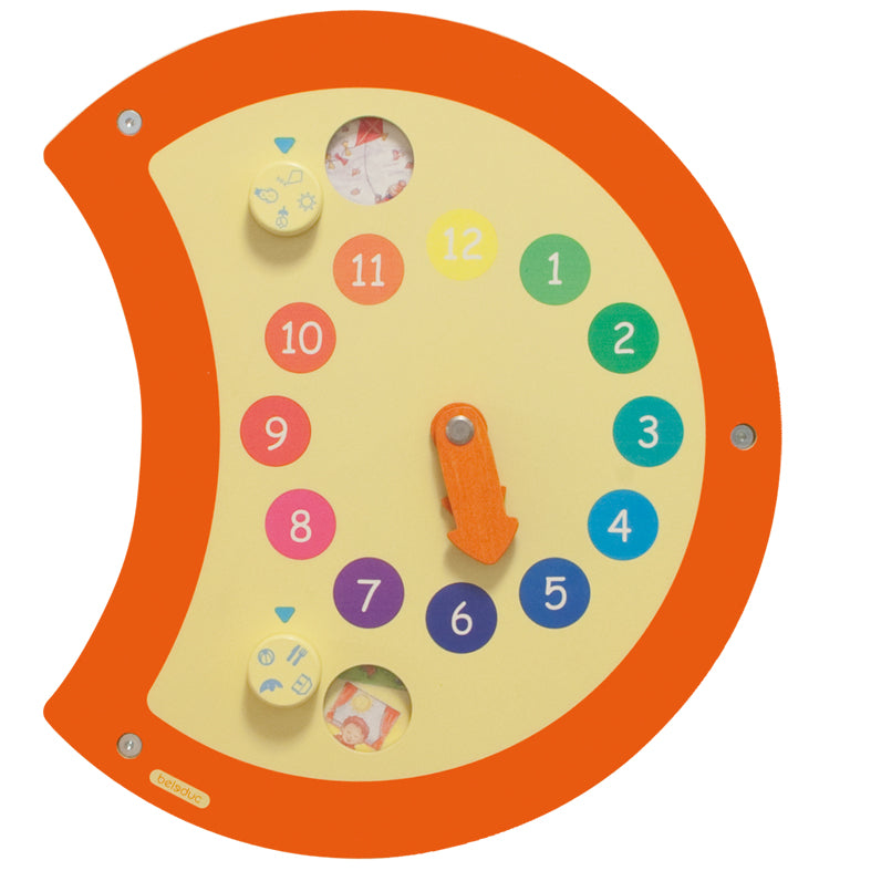 Grazie a questo elemento da parete il bambino potrà conoscere il tempo in modo giocoso. Le piccole ruote raffigurano le diverse stagioni e quattro tipi di momenti della giornata. Il gioco sviluppa le capacità motorie, la creatività e le capacità comunicative del bambino. La lunghezza totale dell'elemento da gioco da parete Caterpillar è di circa 195 cm. Dimensioni: 35x47 cm.