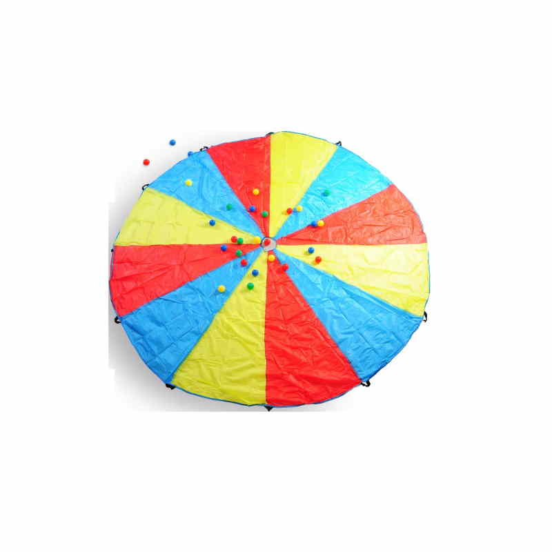 Il diametro del paracadute è di 3 m. Lungo il bordo del paracadute ci sono 12 maniglie. Nella confezione sono inclusi 24 palline di plastica.