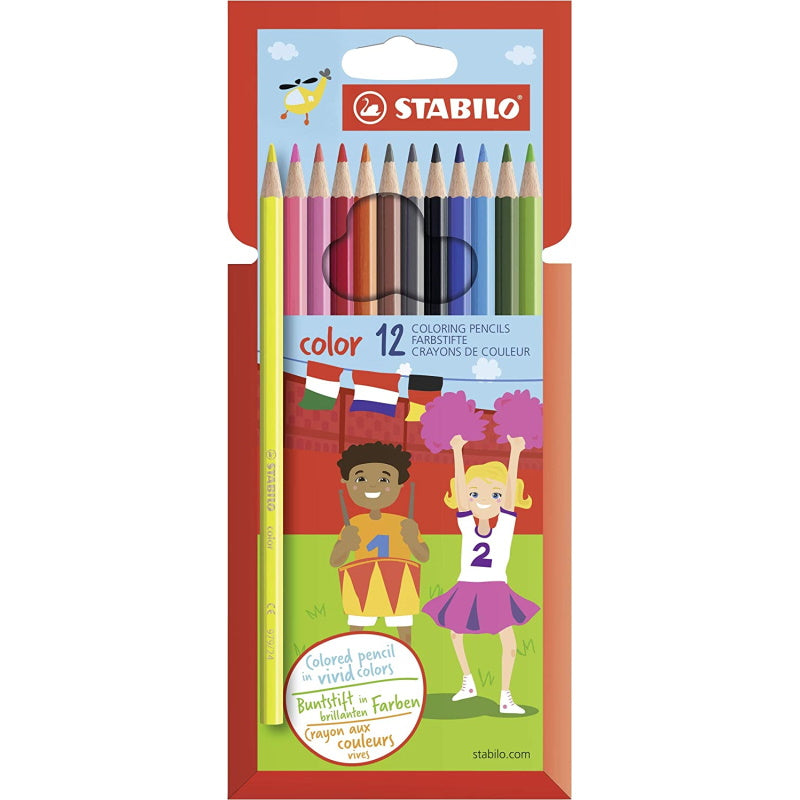 Matita in legno colorata con mina da 2,5mm con ricca applicazione di colore. Astuccio in cartone con 18 colori base.