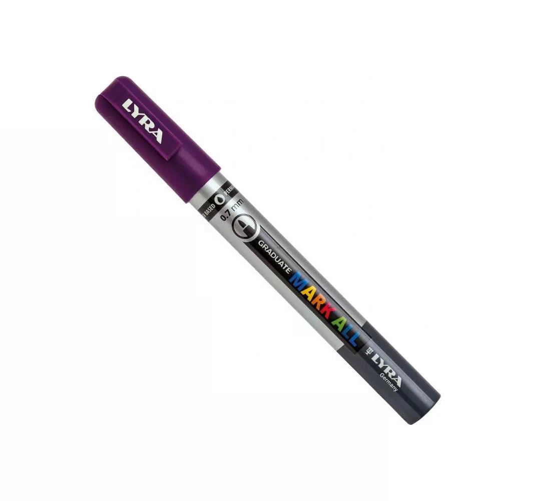 MARK ALL è un marcatore a tempera multi superficie. Da un tratto sottile fino ad uno spesso e largo, i marcatori Lyra Graduate sono formulati con inchiostri a base d' acqua per decorare e disegnare ogni tipo di superficie e rendere ogni creazione unica.
