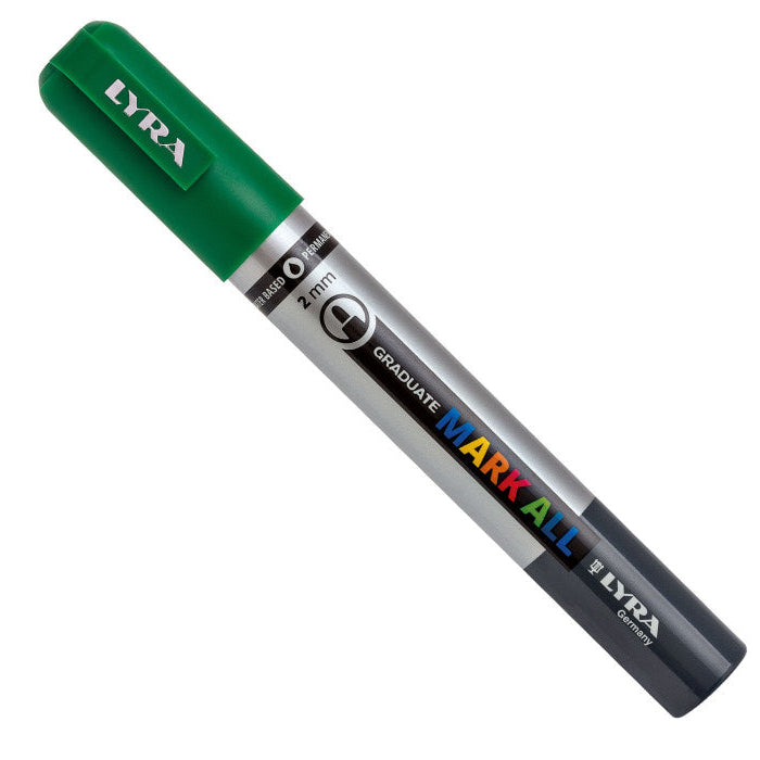 MARK ALL è un marcatore a tempera multi superficie. Da un tratto sottile fino ad uno spesso e largo, i marcatori Lyra Graduate sono formulati con inchiostri a base d' acqua per decorare e disegnare ogni tipo di superficie e rendere ogni creazione unica.