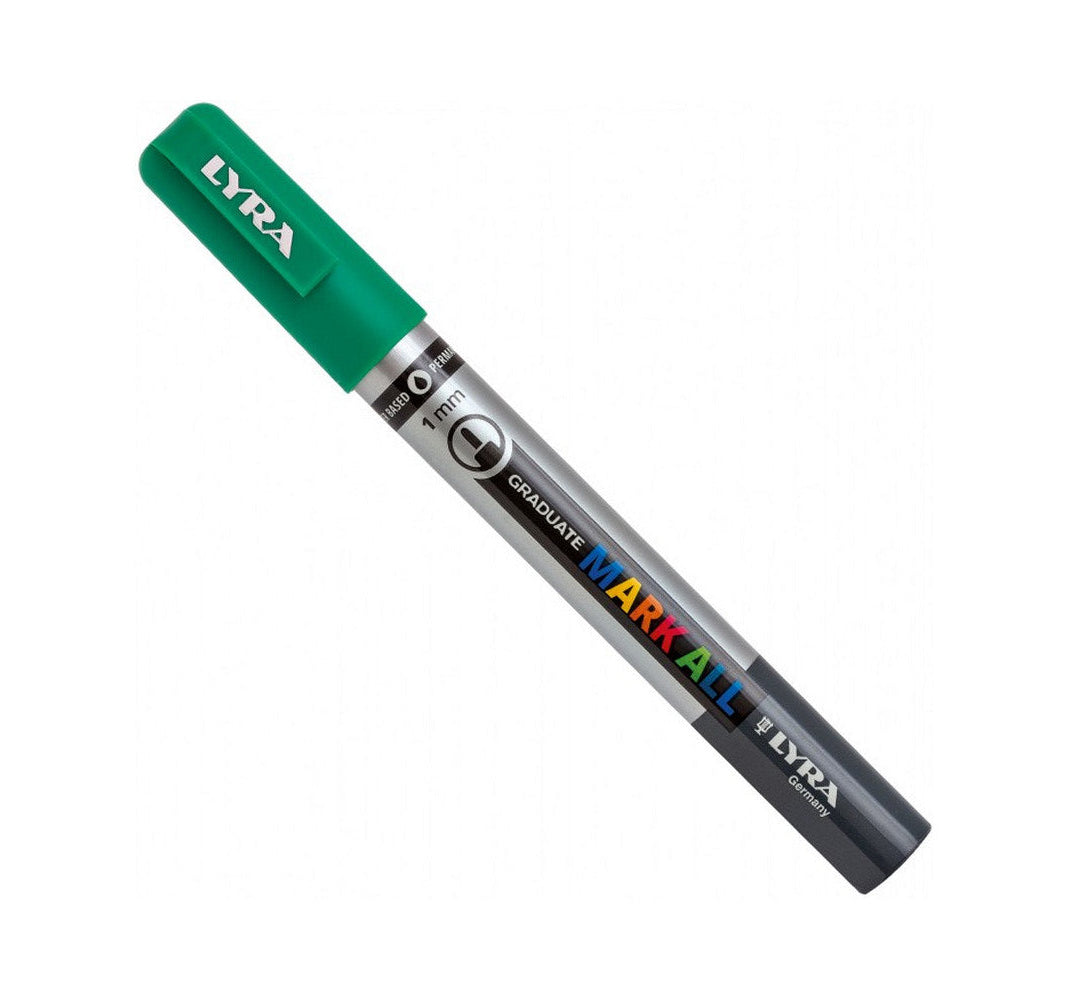 MARK ALL è un marcatore a tempera multi superficie. Da un tratto sottile fino ad uno spesso e largo, i marcatori Lyra Graduate sono formulati con inchiostri a base d' acqua per decorare e disegnare ogni tipo di superficie e rendere ogni creazione unica.