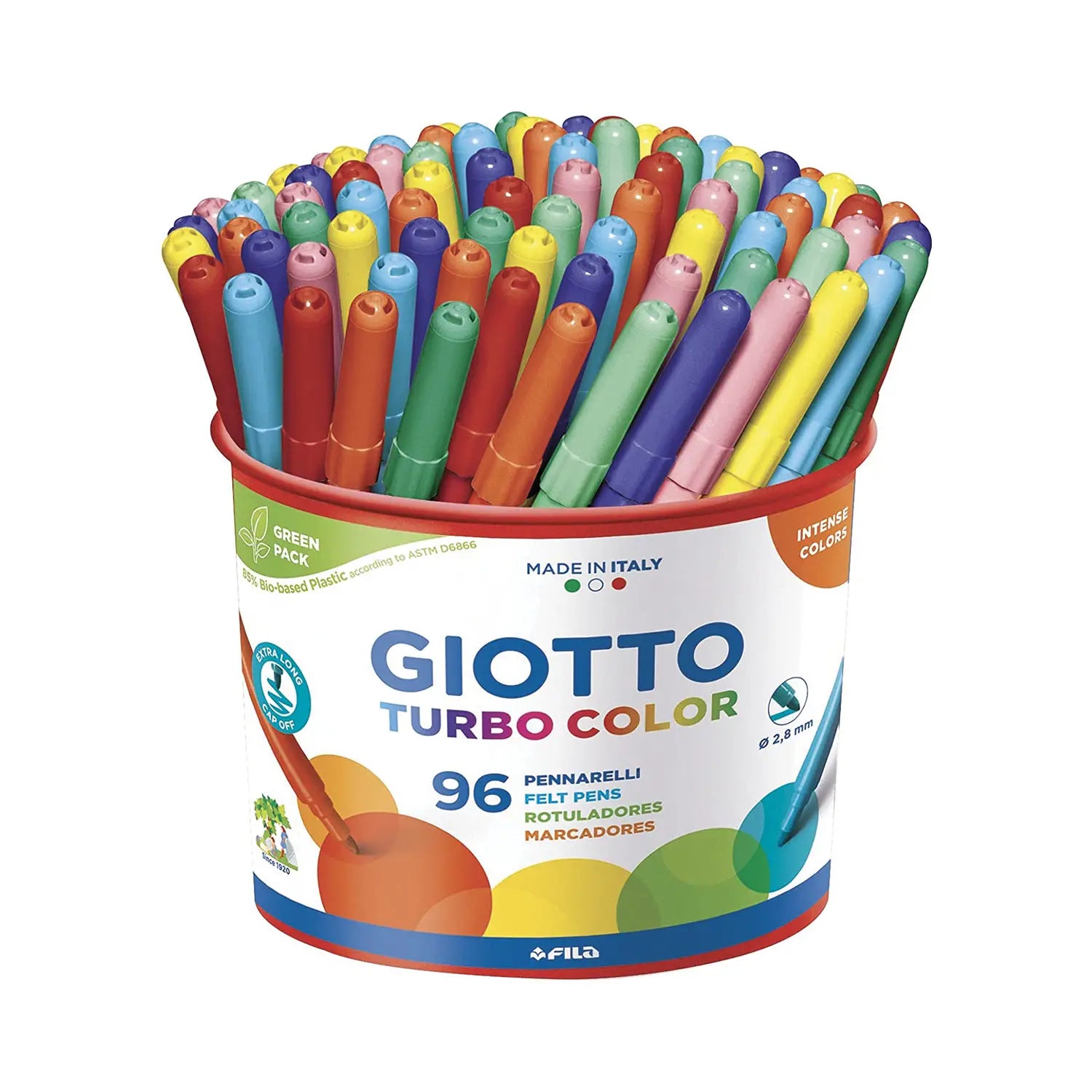 I pennarelli Turbo Color Giotto sono la scelta perfetta per attività artistiche e ludiche, offrendo ai bambini una vasta gamma di colori brillanti e intensi. Questi pennarelli sono dotati di inchiostri innocui e lavabili, garantendo una colorazione sicura e senza preoccupazioni. I pennarelli sono progettati con un cappuccio ventilato antisoffocamento e un tappo di sicurezza, fornendo ulteriori livelli di protezione durante l’utilizzo. La punta in fibra antirientro è super resistente e di lunga durata, consentendo ai bambini di ottenere colori intensi su ogni superficie. Questi pennarelli sono ideali per attività creative, motorie e cognitive. I bambini che stanno imparando a colorare nei margini apprezzeranno le schede con immagini caratterizzate da bordi spessi e evidenti, che consentono loro di ottenere risultati soddisfacenti e stimolare la loro creatività. Man mano che acquisiscono confidenza, è possibile proporre immagini sempre più complesse, diminuendo lo spessore del bordo. La confezione include 96 pezzi in 12 colori intensi, pratici e lavabili. Questa ampia selezione di colori offre molte possibilità creative ai bambini. I pennarelli Turbo Color Giotto sono adatti per la Scuola dell’Infanzia e Primaria, ma sono apprezzati anche per attività artistiche a casa.