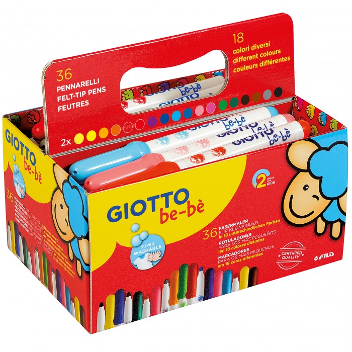 Pennarelli ideali per i più piccoli. Colori sicuri e superlavabili da mani e tessuti, dermatologicamente testati. Cappuccio ventilato antisoffocamento, tappo di sicurezza e pennino bloccato dal diametro di 5 mm super resistente.