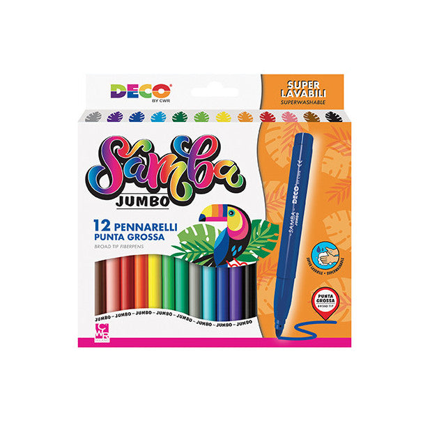 Confezione 12 pennarelli a punta grande, super lavabili, colori brillanti, atossici.
