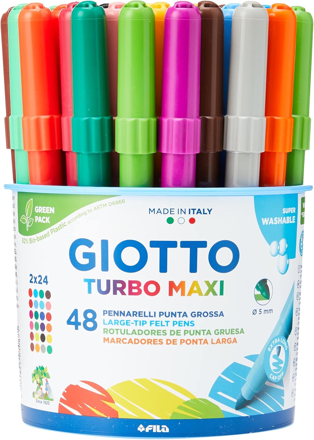 Pennarello formato maxi, facile da impugnare, punta grossa Ø 5 mm. Inchiostri innocui, lavabili dalle mani e dai tessuti in lavatrice a 40 °C.