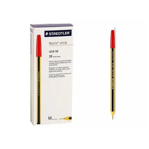 Noris® stick 434, penna a sfera, grande autonomia di scrittura grazie all'elevato contenuto d'inchiostro. cappuccio nel colore dell'inchiostro. Penna a sfera con fusto esagonale e lungo puntale in ottone utile per la scrittura in spazi ridotti o con l'uso di righelli e mascherine.