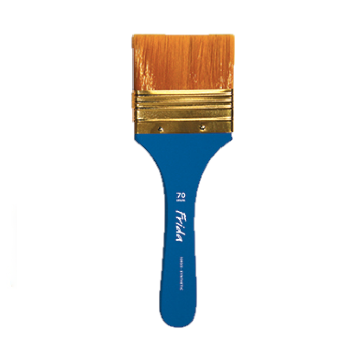 Pennellessa Frida a pelo sintetico, ghiera in ottone, manico in legno verniciato blu.
